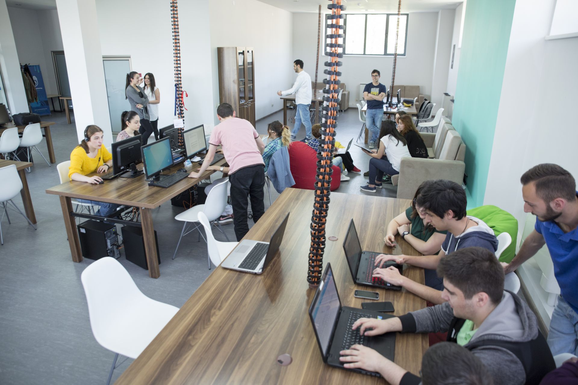 Innovative Solutions and Technologies Center coworking space is located in the city center on the campus of Yerevan State University. Here we aim at creating a community of innovation enthusiasts, people who want to be the shapers of the future. We provide an open space office with all that can be needed for creative work, comfortable working and resting zones, a big kitchen and an amazing balcony with a view of Ararat. In the same time, the members will always be engaged in techno life of Armenia by participating in the networking events that are constantly organized by ISTC and partner rooms.