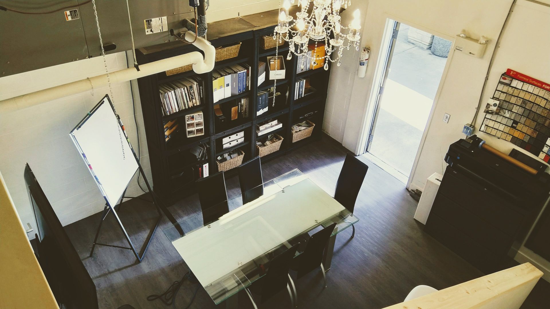 Our space combines an open concept office area of desks, with a kitchenette and private boardroom