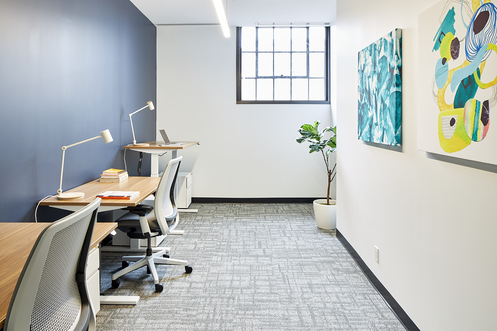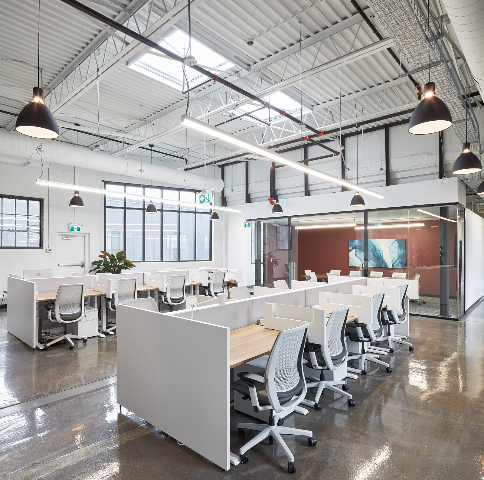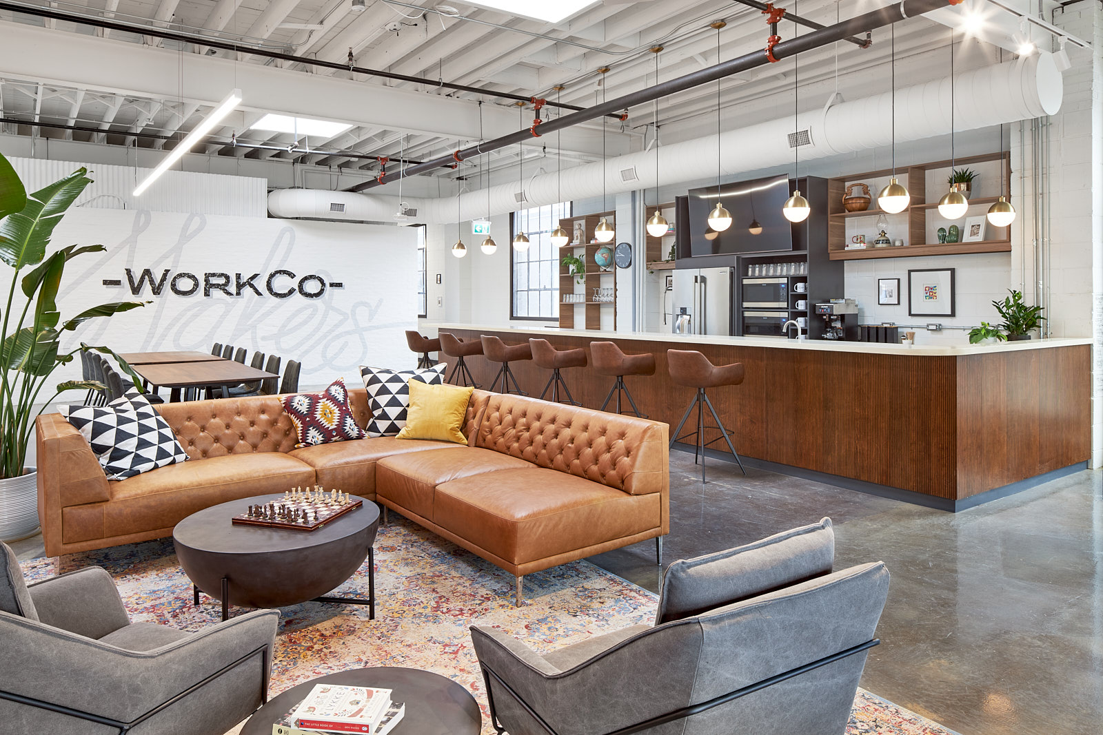 WorkCo is thoughtfully designed as a place of purpose, inspiration, achievement and happiness. From the airy and open loft-style setting to the abundance of natural light streaming in from the oversized warehouse windows and skylights, the ambience is calm and curated for your work day well-being. You’ll appreciate the comfort of the ergonomic furniture and refreshing details like the greenery and art. The wellness room, lockers, lounges and even a healthy vending machine (for those crazy work nights) make coming to work enjoyable and empowering.