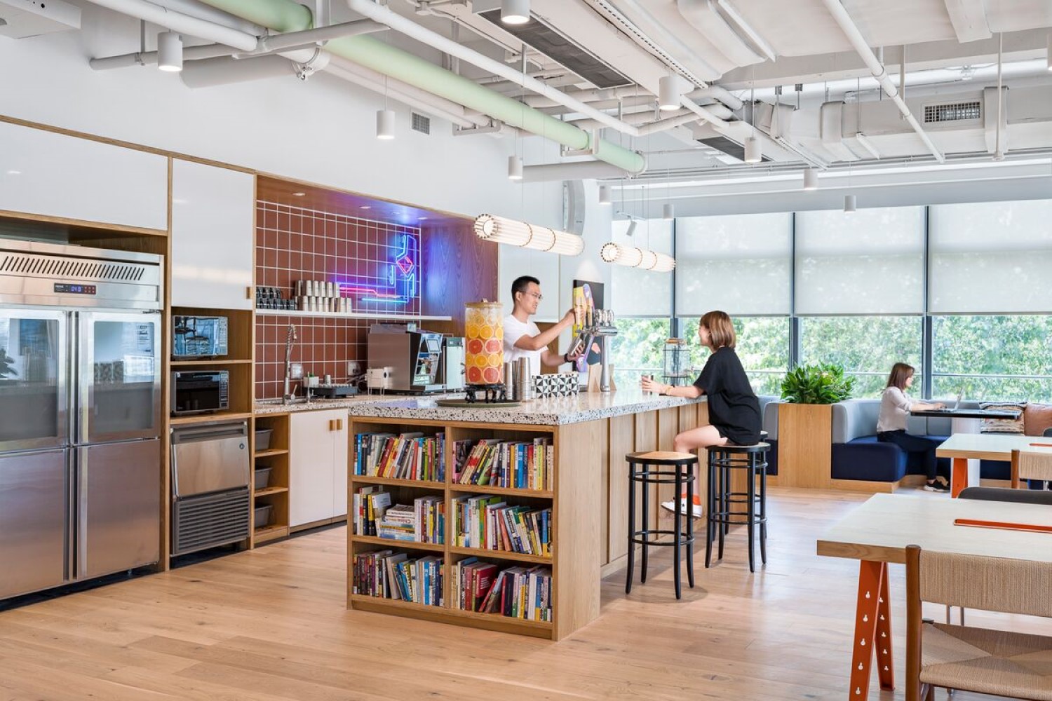 In the central business district where large corporate headquarters gather, WeWork Oceanwide Fortune Center brings a brand new work experience to Wuhan! Whether it is a team of 1 or over 500 people, our flexible monthly membership program and creative interior design will make your work more focused and efficient. Inspired by the Yangtze River Culture, the warm-tone space is decorated with light-blue color objects, which brings freshness and energy, allowing you to focus with ultimate efficiency and creativity.