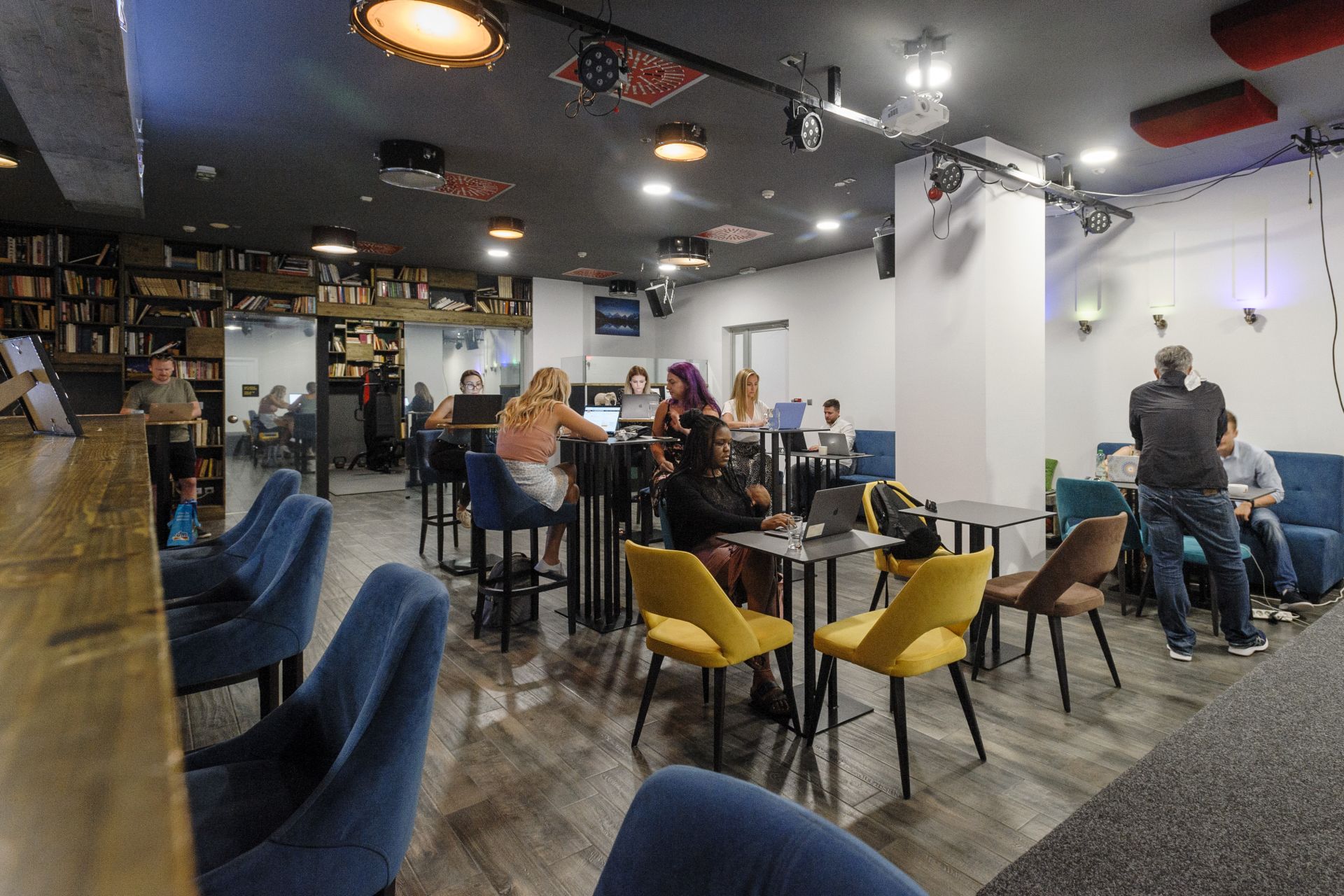 The Works offers coworking 24/7, with high-speed WiFi (two 1GB lines) and coffee, in a trendy and comfortable space. We have 30 fixed desks and 20 floating, offering traditional ergonomic chairs, high tables, standing desks, and couches.