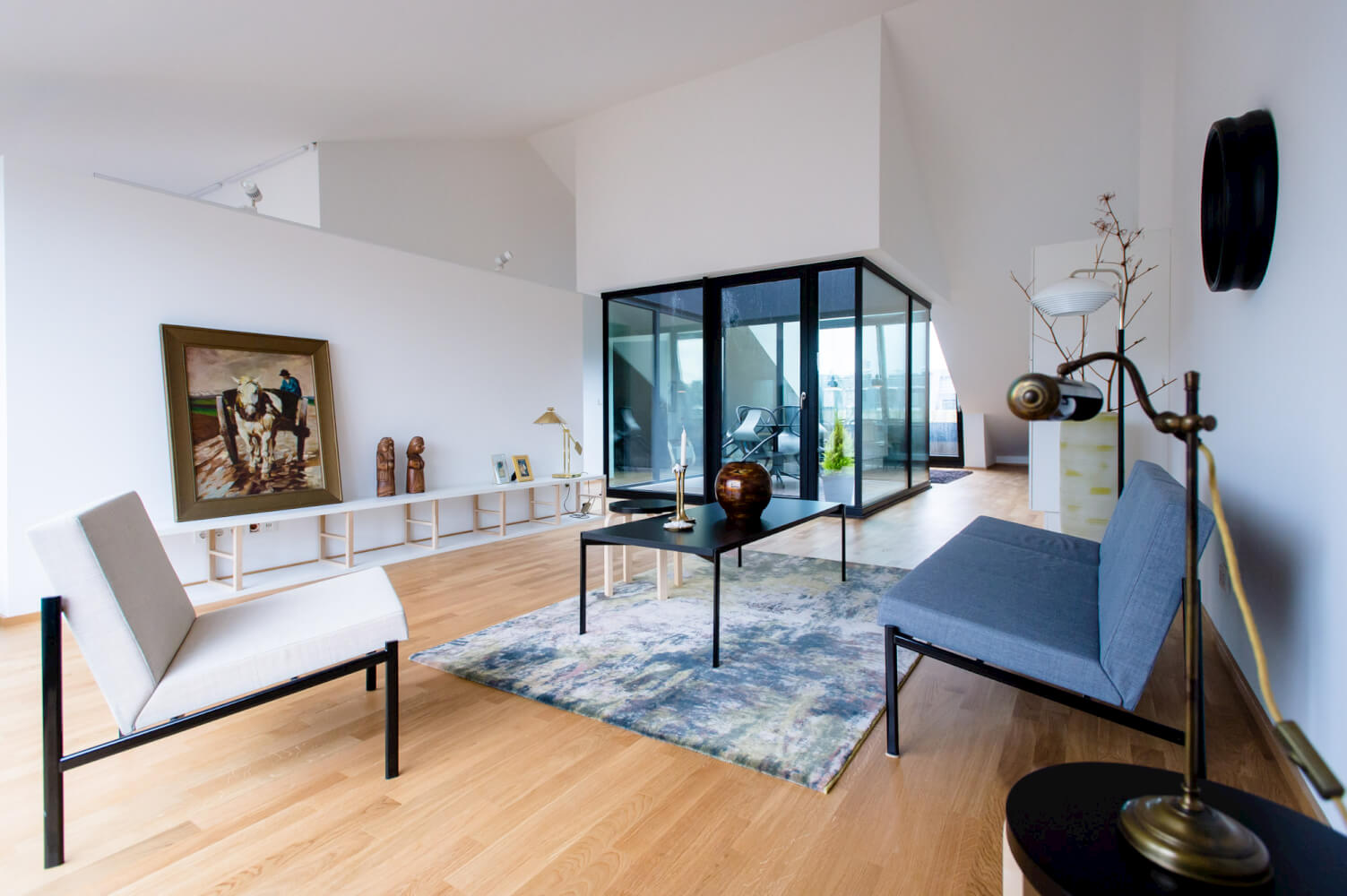 The other known as the "Chief Apartment" is the penthouse nest that has an inside yard-like atrium. This is the ultimate think-tank space with open views to the sky to let ideas soar. In addition there are two more balconies with views of the Cologne Dom Cathedral and the Media Tower. This apartment is the superlative space for photo shoots.