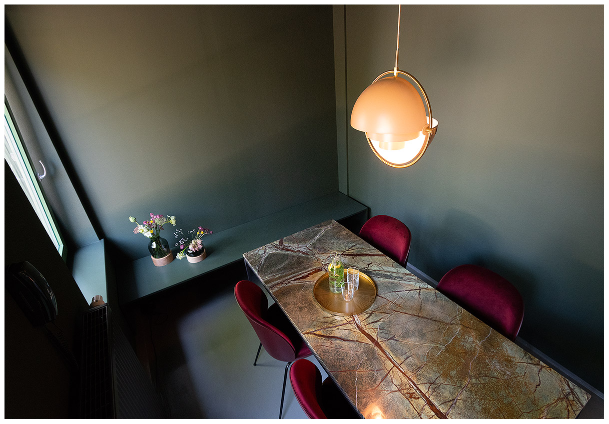 Our Apostel Room can accommodate a team of 5 people. It has one large desk island that fits up to 5 people comfortably and comes with a whiteboard and a big shelf for storage. It leads to the garden, so it's extra quiet.