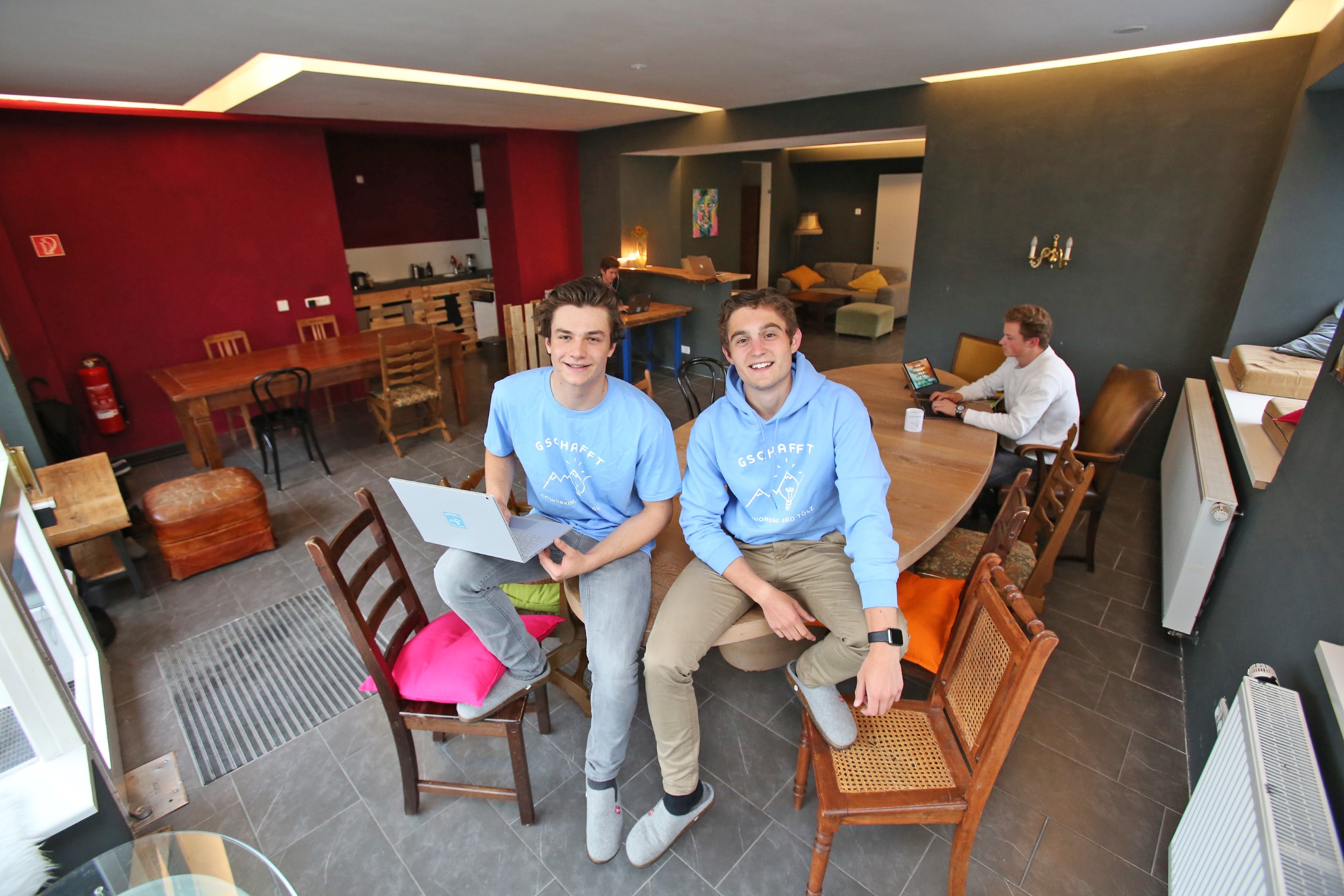 Der „Space“ und damit das in Bad Tölz gelegene Gschafft ist der gesamte Raum, in dem das Zusammenarbeiten stattfindet. Wichtig ist, dass es offene Arbeitsbereiche gibt, die die Kommunikation untereinander anregt. Jeden Tag und rund um die Uhr kann jedes Mitglied den neuen „Coworking-Space“ nutzen. Das Türschloss und das Licht lassen sich nämlich per App 24/7 öffnen beziehungsweise steuern.