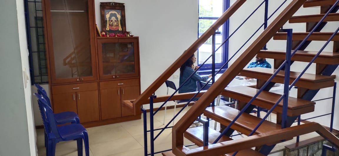 Located in the heart of Kalyan Nagar, (North Bangalore), our co-working space is a quaint duplex residence-turned-office space. Surrounded by a well-manicured garden, vibrant interiors, and fresh air all day long, our office has adequate amenities and facilities required for your daily use.