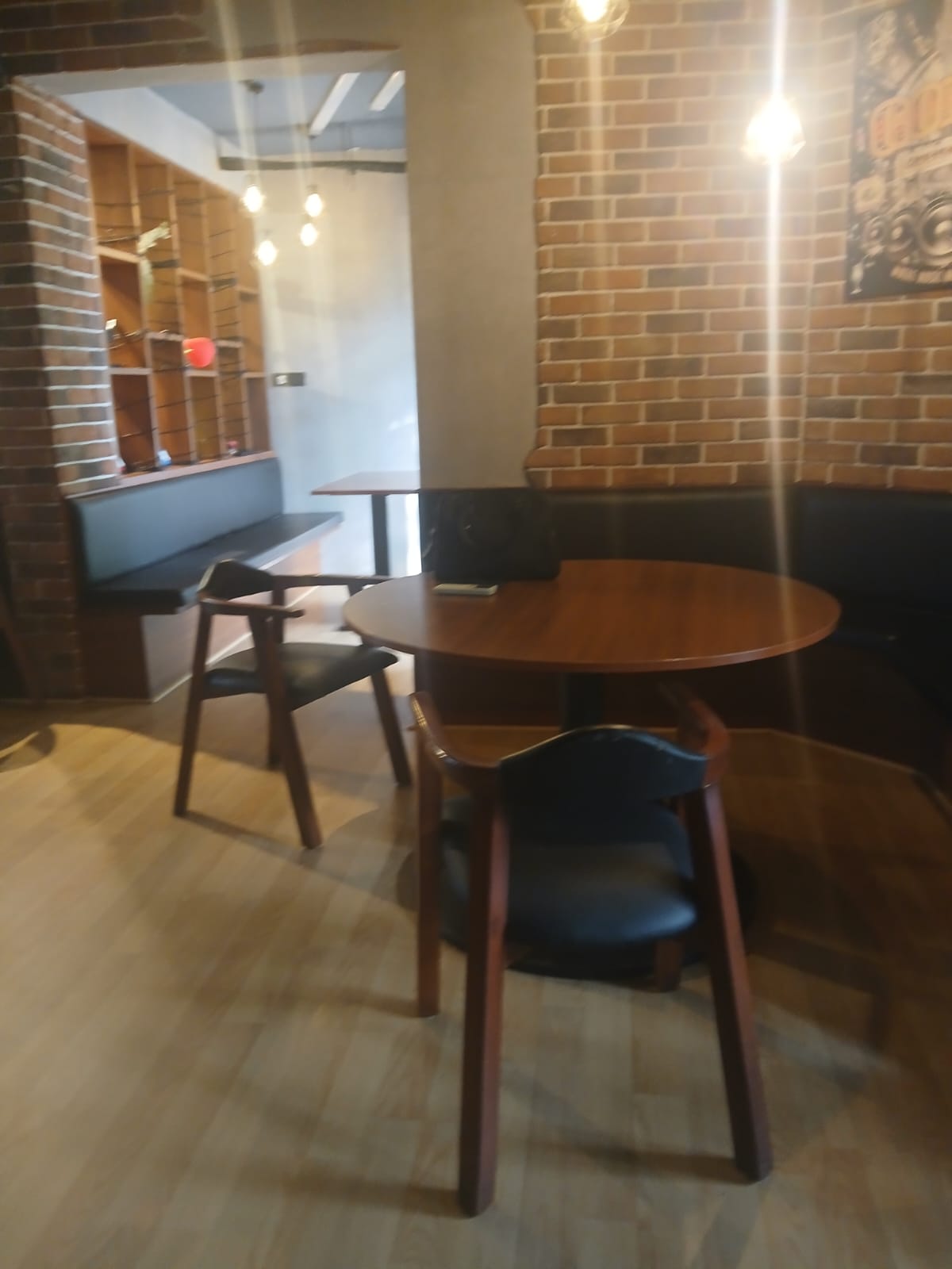 relaxed vibe, maybe with comfortable seating, good coffee, and a quiet but creative atmosphere