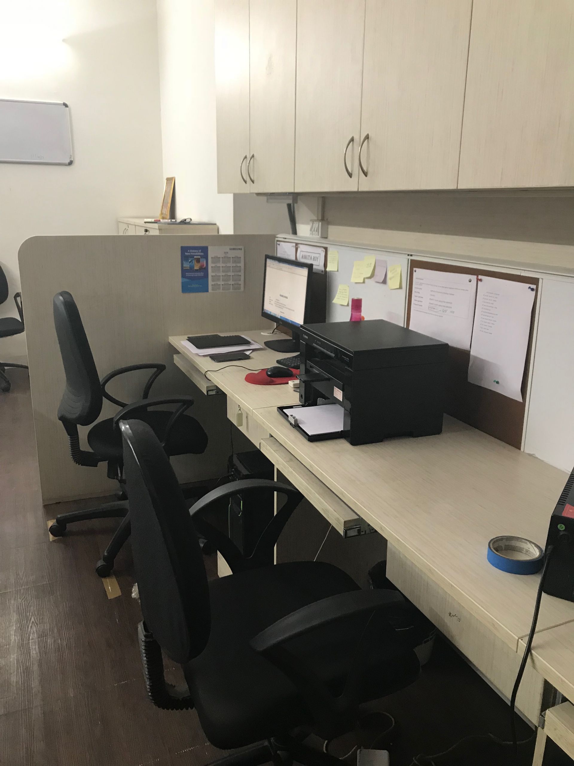 We have co-working space available in Koregaon park on North main road. Easily accessible and prime location. The office is on the ground floor and ample space for two-wheeler parking. The rooms are Air conditioned. We provide tea/coffee twice a day. The cubicles are brand new and well maintained. Each cubicle has five drawers with locking facility and one side cupboard for storage. We believe in amicable and friendly work atmosphere. The office will be open Monday to Saturday – 9am to 7pm