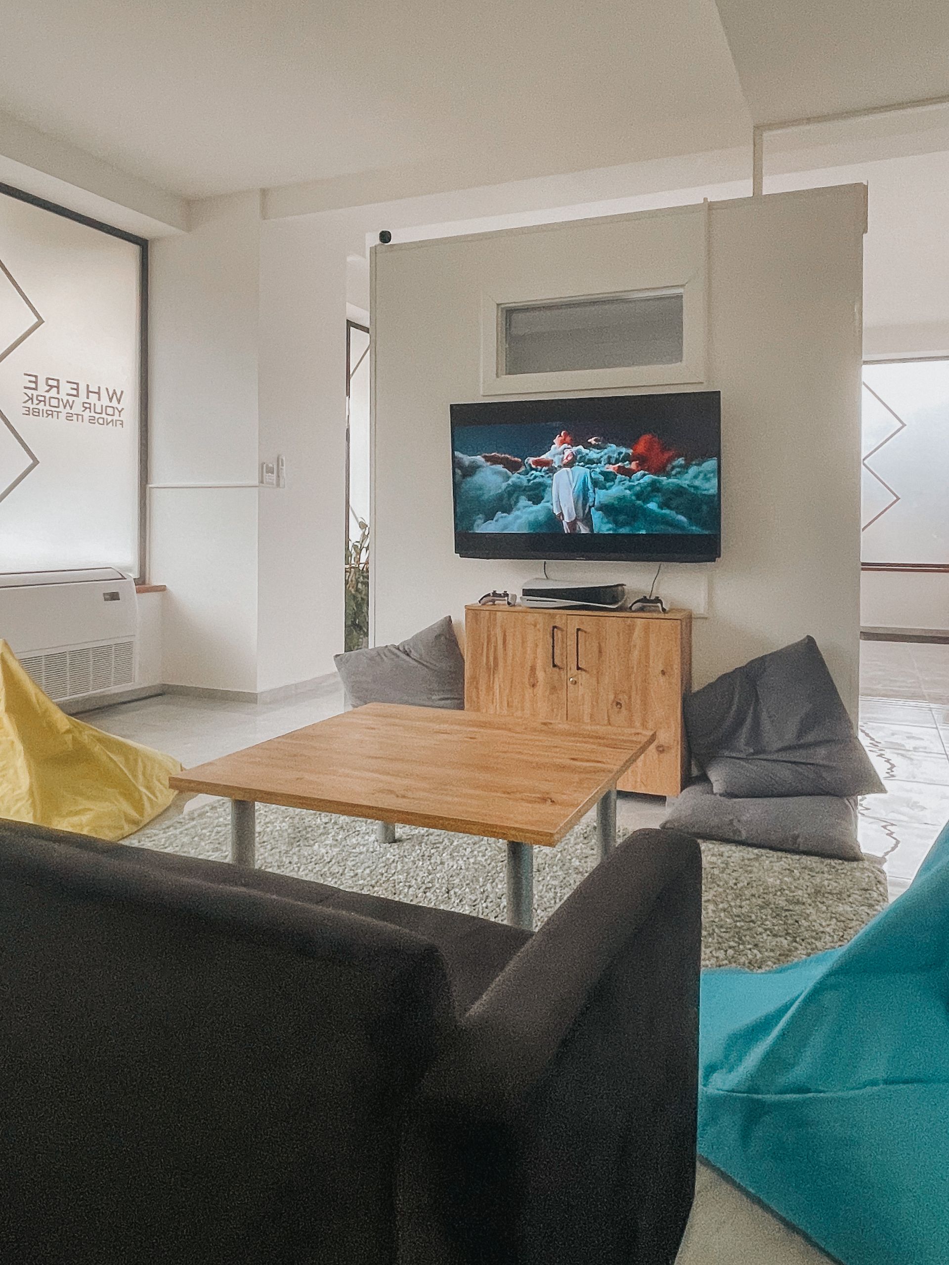 Step into a vibrant, fully equipped workspace where fast 300/300 Mbps internet, a modern kitchen, and cozy chill zones await.