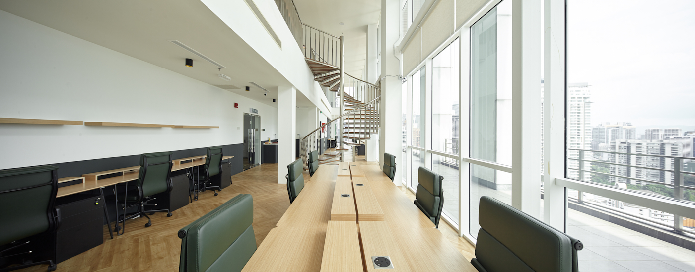 Common Ground Bukit Bintang is a prime 21,000-square-foot, three-storey space on the top floors of a Grade A office tower in the heart of Kuala Lumpur’s Golden Triangle. Boasting an unobstructed, panoramic view of downtown Kuala Lumpur, including the Petronas Twin Towers, it’s a short walk to Pavilion mall and other major dining and entertainment destinations in Bukit Bintang. Parking is available in the building and in open lots within walking distance.