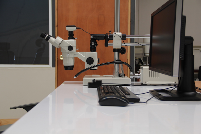 Microscopio Stereo con cámara digital de 10MP y computadora con software de visualización y captura de imagnes.