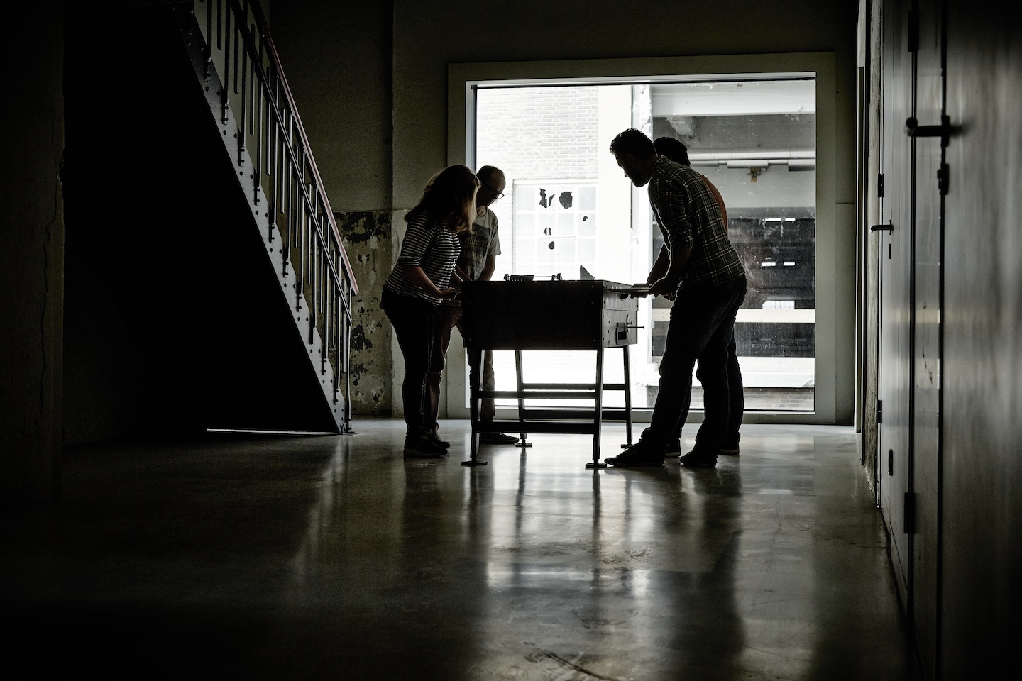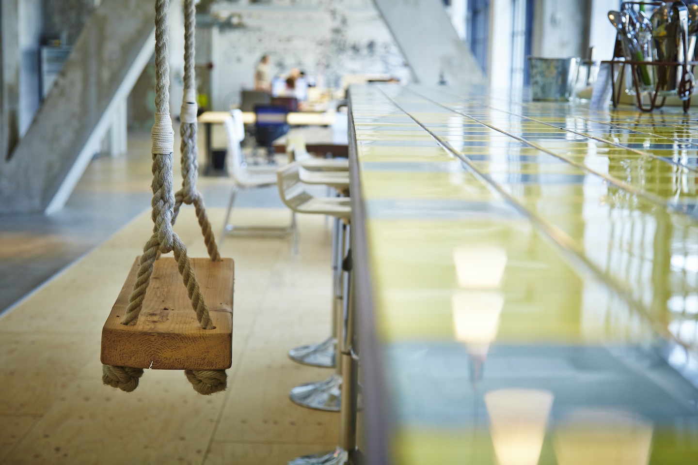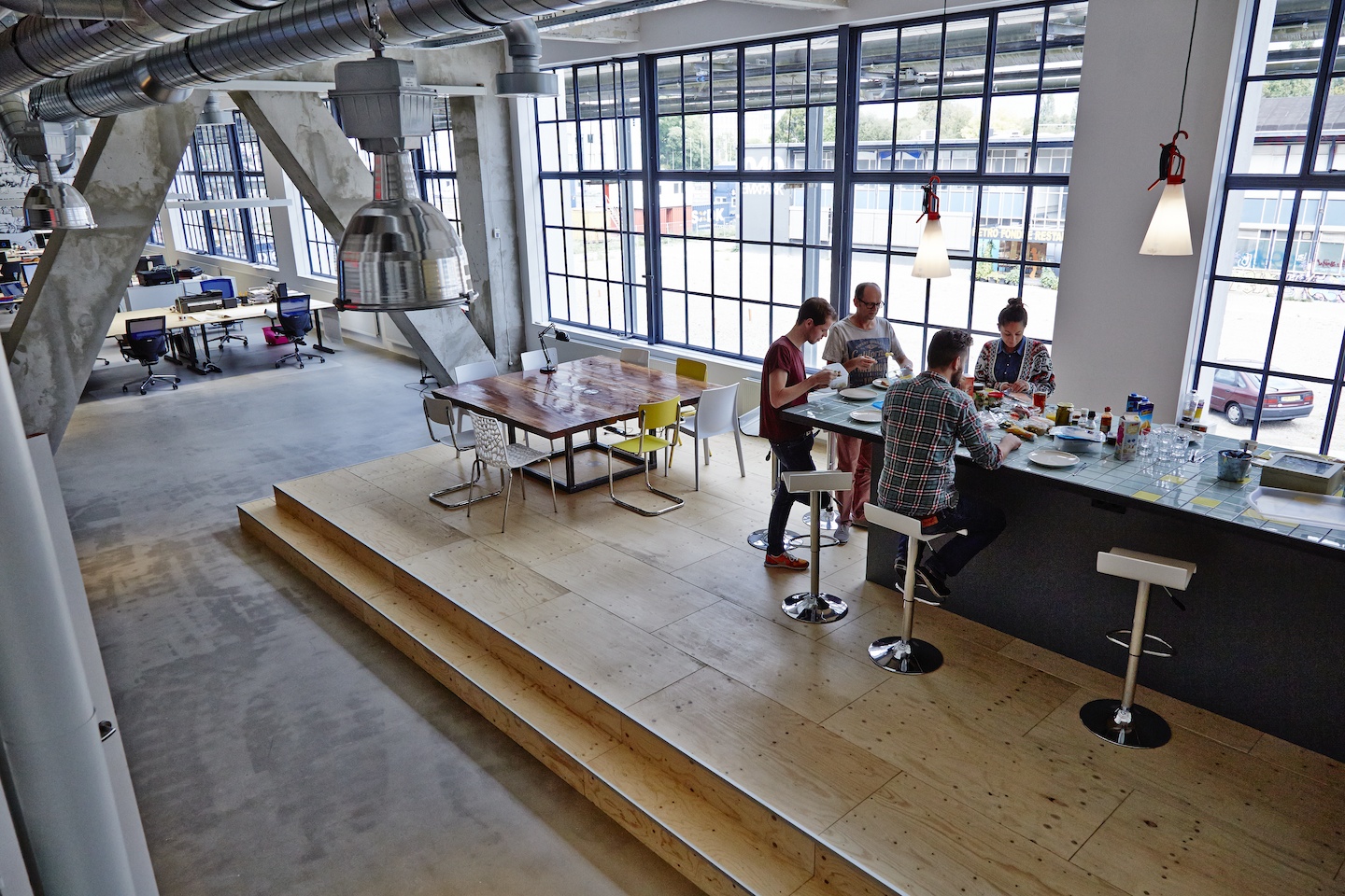 Strijp CS is non-profit organisation, which translates into a lot of space for the coworkers with a big common kitchen and bar, foosbal and a table tennis table.