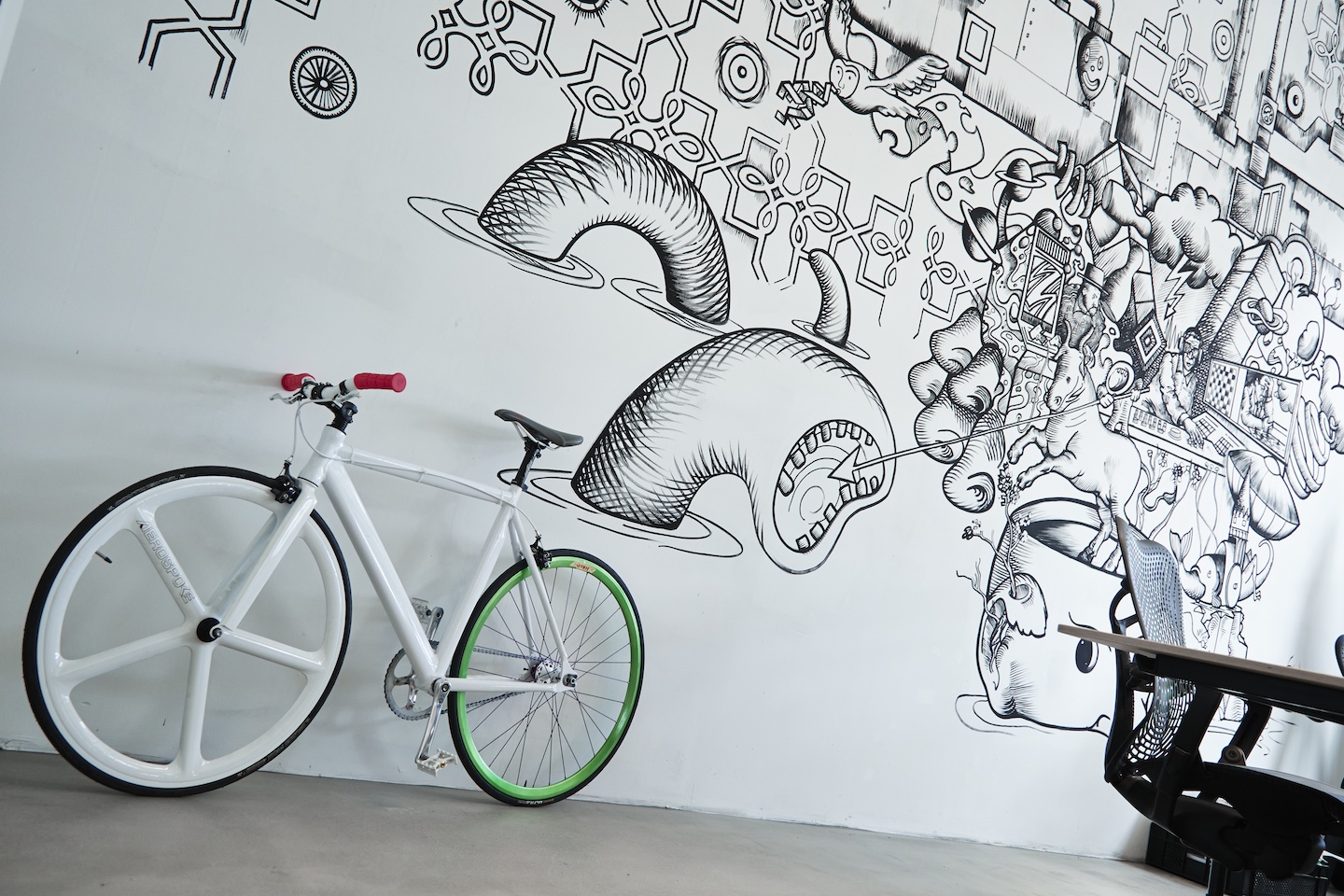We have big desks with hd monitors, espresso coffee, a meeting room for up to 15 people and much more.