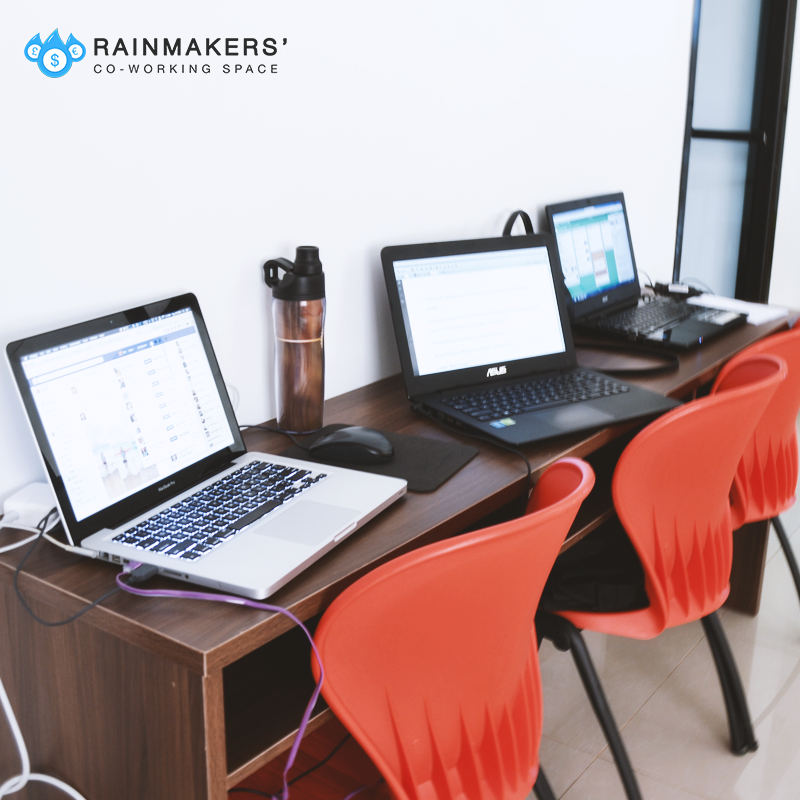 The doors are open from 6 am to midnight Monday to Friday and 8AM to 6PM, Saturdays at Rainmakers, a coworking space established to provide a modern and conducive working environment for local professionals, creative souls, digital nomads, virtual assistants, bloggers, designers, startups and innovative entrepreneurs.