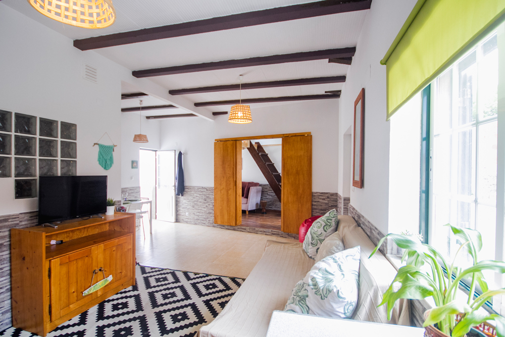 Wake up in our shared or private loft rooms with cosy wooden décor, cook the breakfast of your dreams in our open plan kitchen/living room, top up your vitamin D in our private sunny courtyard, catch some waves and get a bit of work done in between.