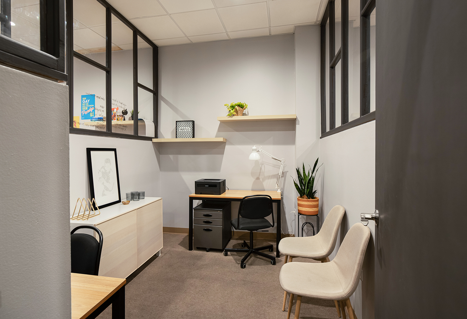We have day passes, hot desk, dedicated desk, private offices and virtual office.
