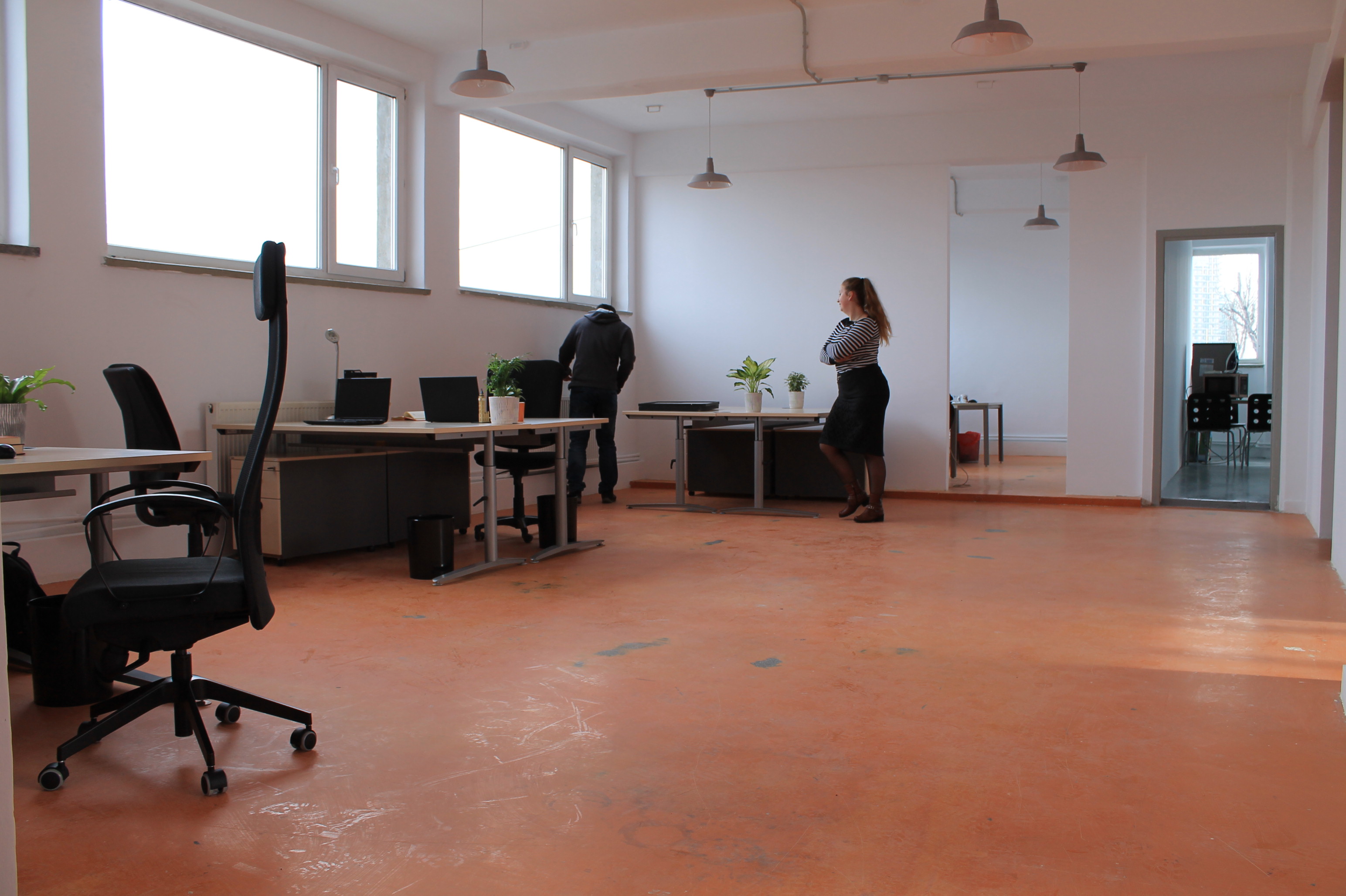 Coworking Bucharest is located along the Dambovita river in central Bucharest in an industrial complex that used to house a textile factory. The total floor space of 190 square meters has high ceilings and a lot of natural light, providing an open and creative environment. There are three individual offices and a large open space, as well as a fully equipped kitchen and lounge area.