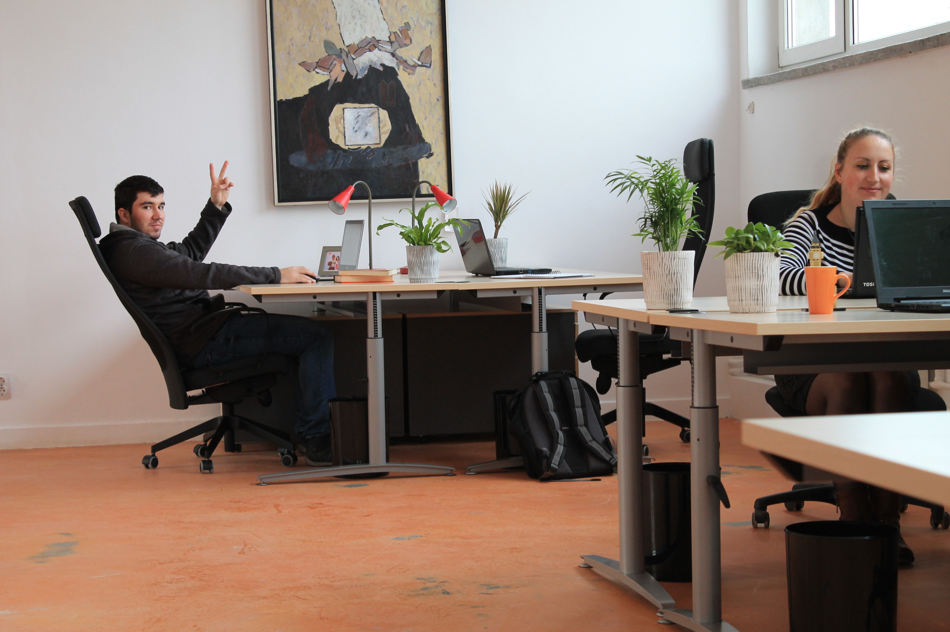 We love discussing startups and the tech scene, and have over 15 years experience in the tech industry. We have two other coworking hubs in Düsseldorf. We speak Romanian, English, Dutch, German and French!