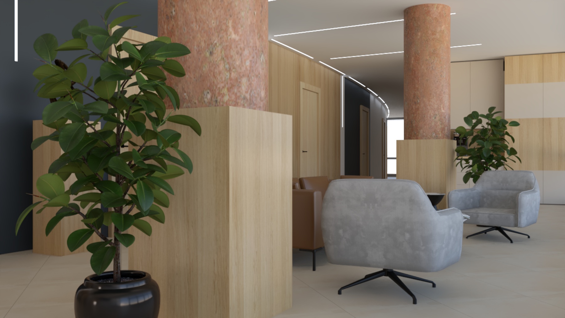 Svaka kancelarija je okrenuta ka parku, osiguravajući obilje prirodnog svetla i svakom radnom prostoru pruža sopstveni balkon. Ova orijentacija ne samo da nudi mirne poglede već i poboljšava radno okruženje mirnom atmosferom.