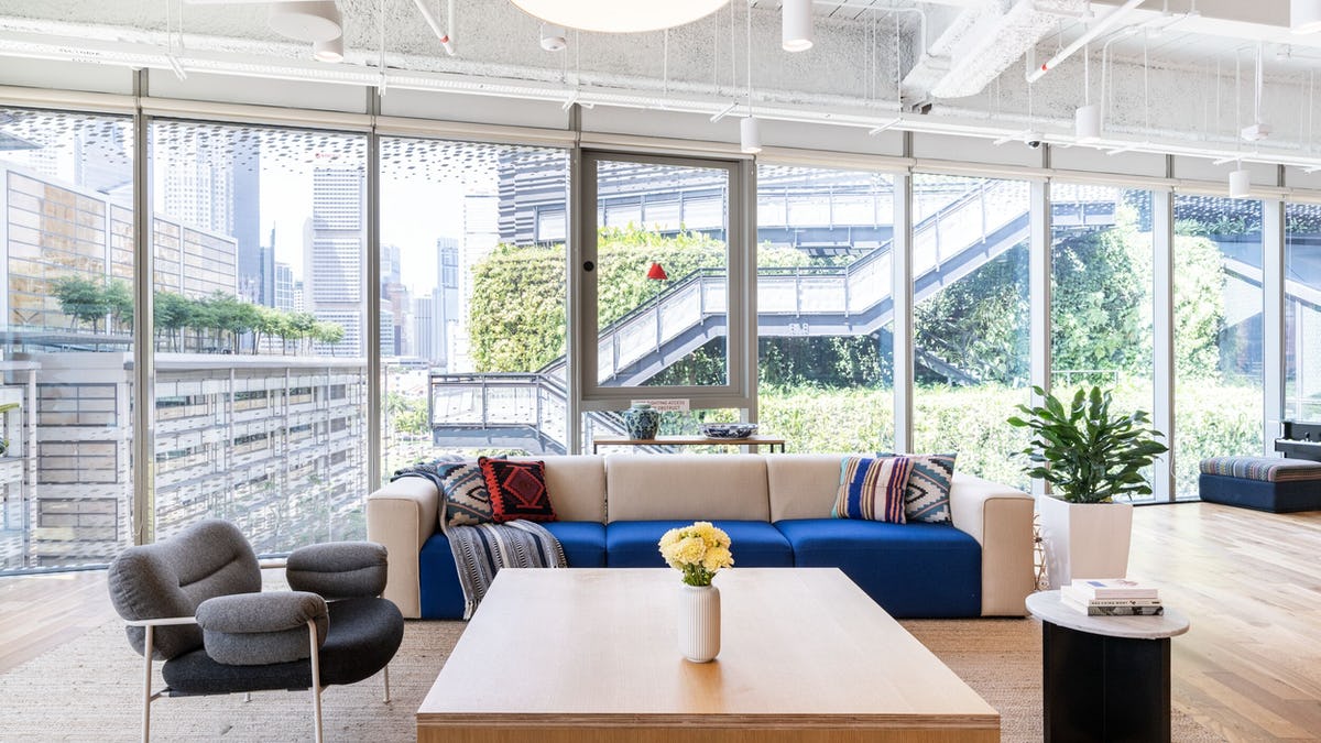 Welcome to our Funan office space, located inside an iconic building in the heart of Singapore’s CBD. The top two floors are dedicated to WeWork, featuring art-filled lounges, unique conference rooms, and sleek private offices. Commuting is simple with the MRT five minutes away. Need a break between meetings? Take a call from our rooftop terrace or treat the team to lunch at the farm-to-table restaurant downstairs. With modern amenities and built-in community, you’ll deliver your best work at our shared office in Downtown Singapore. Schedule a visit today.