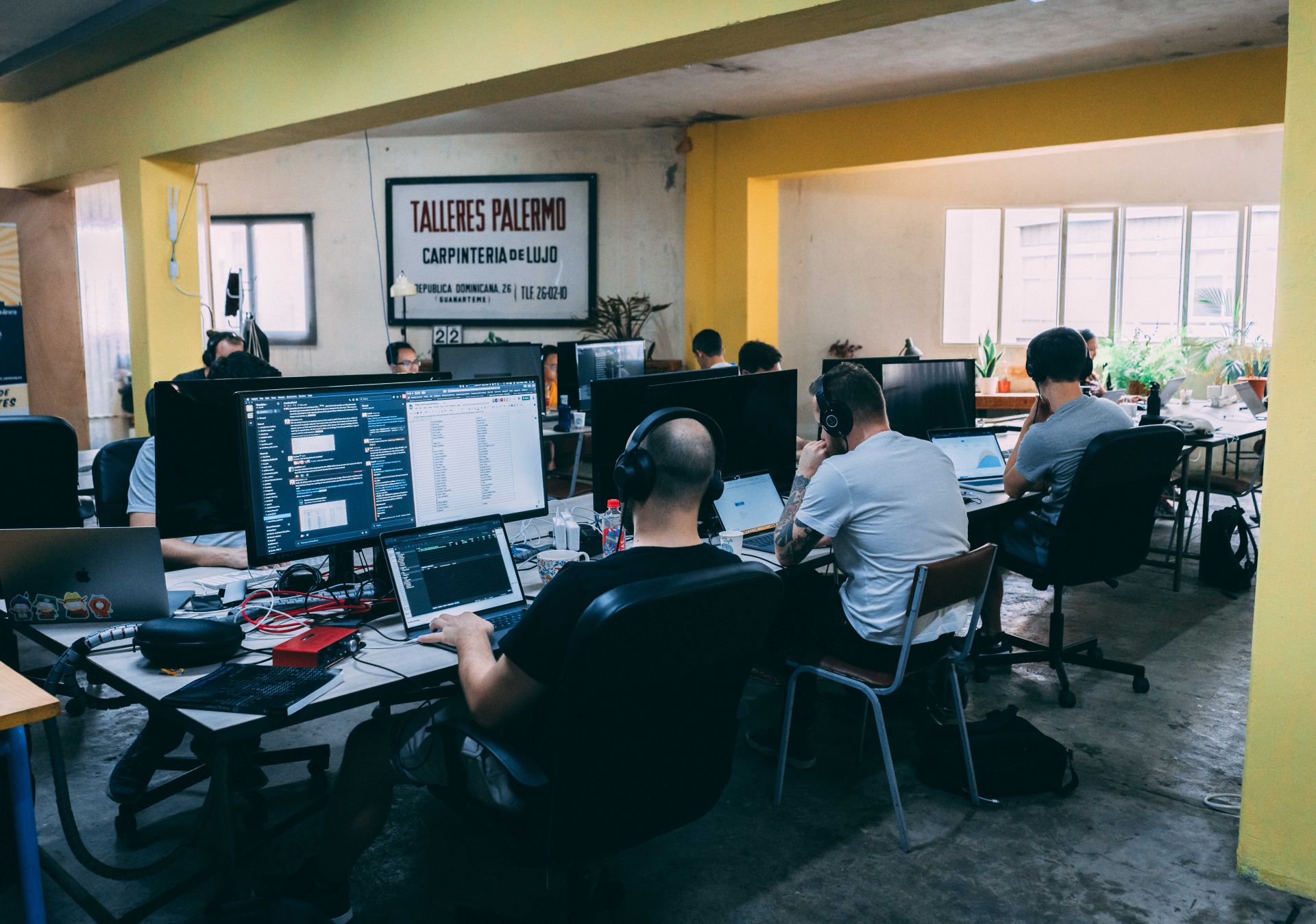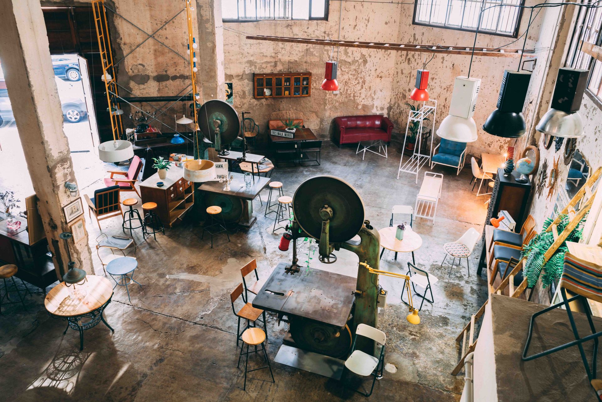 But TALLERES PALERMO is much more than a Coworking. The fist floor is a place where THINGS happen. It is an industrial open space where you may find events, exhibitions, concerts and more. You should also try our artisan beers in the pub "El Palermo" or buy an old fashion armchair or mirror.