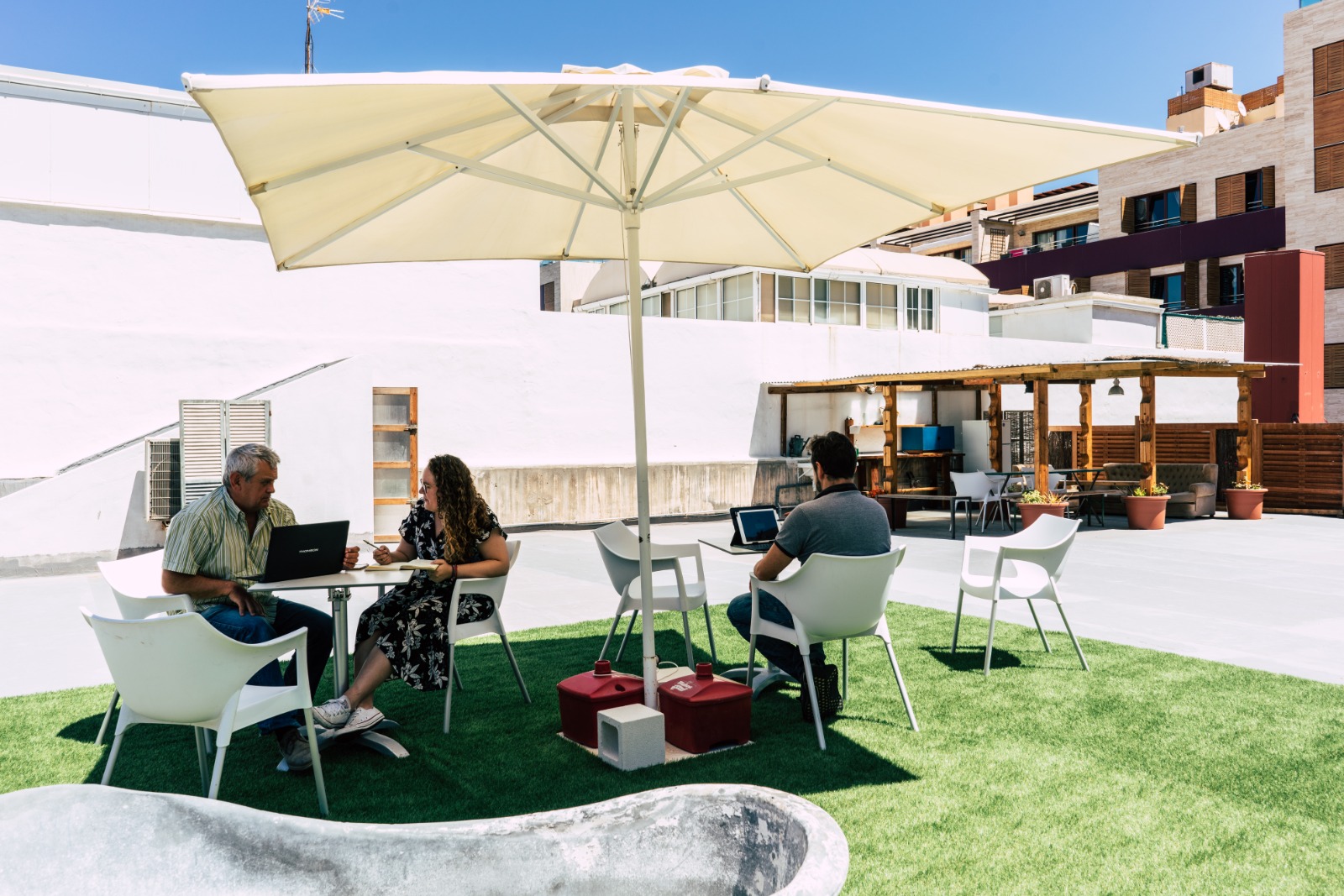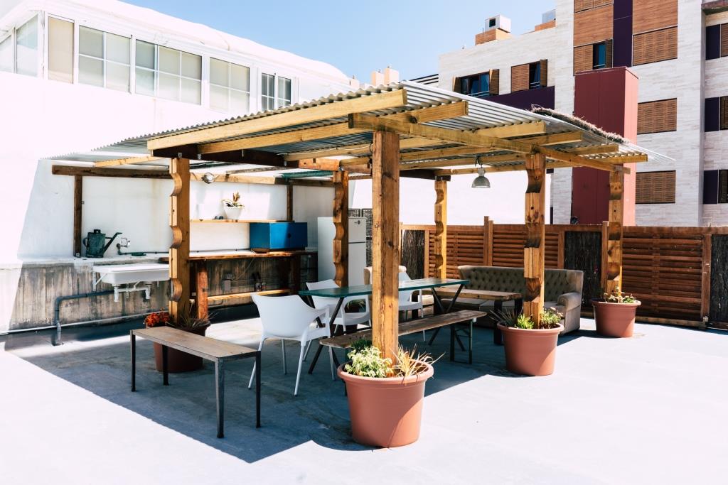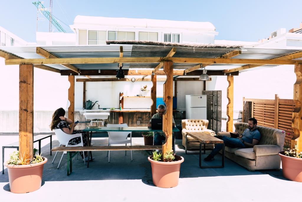 Tenemos 8 oficinas, 20 puestos individuales, 2 salas de reuniones, una azotea enorme con un huerto urbano y un espacio para eventos con una superficie de 350 m2.
