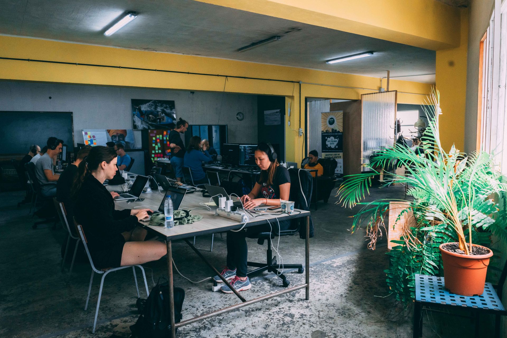 We have 8 offices, 20 hot desks, 2 meeting rooms, a huge rooftop with an urban orchard and a 350 m2 event venue.