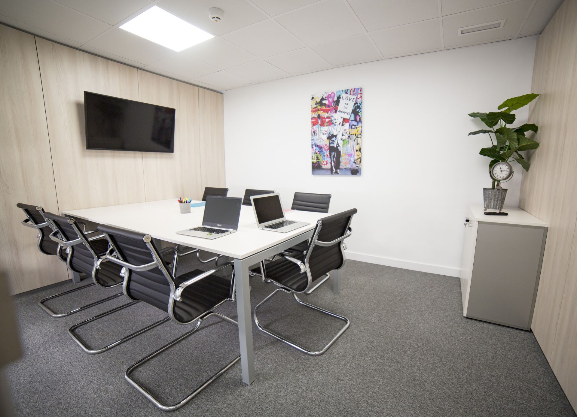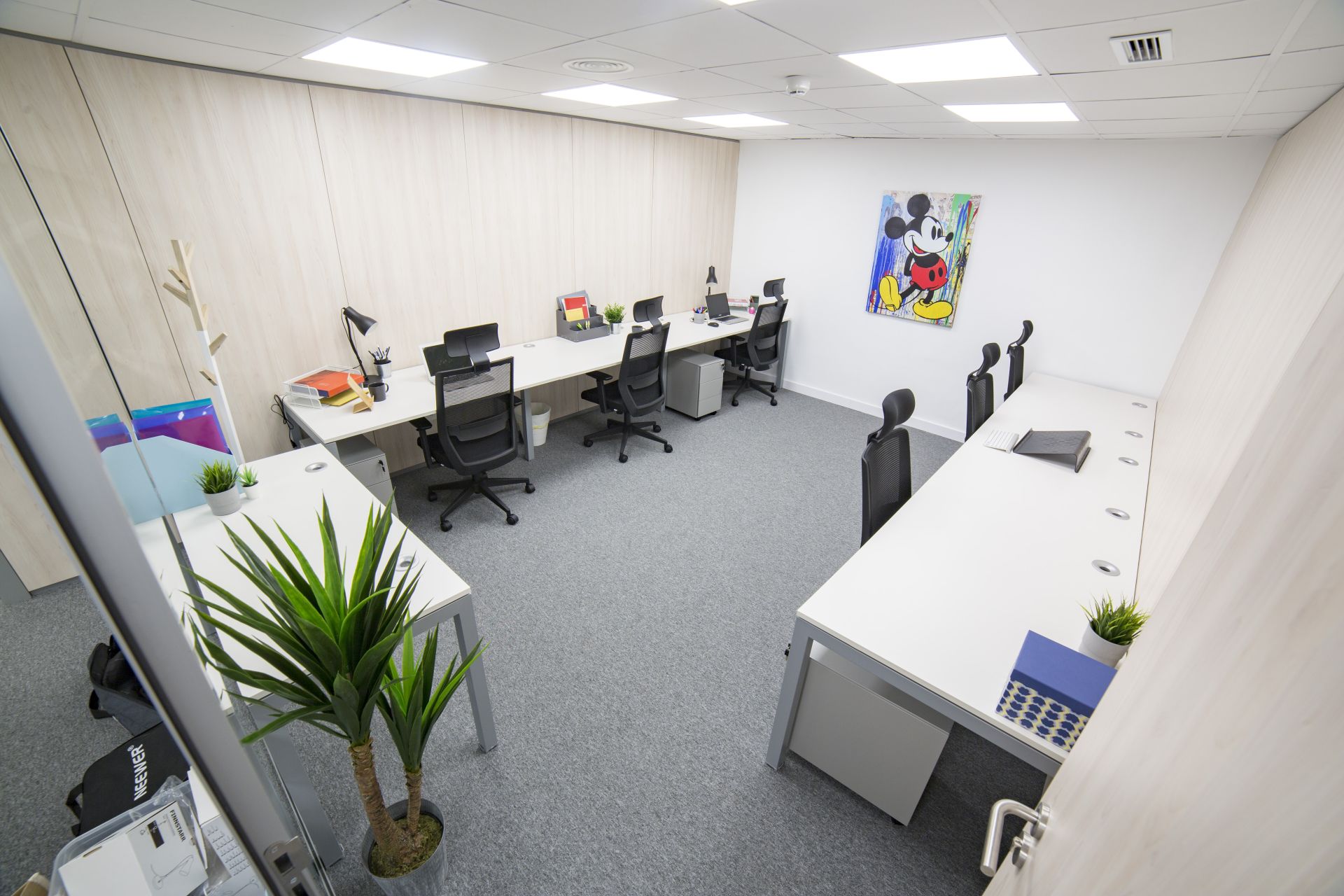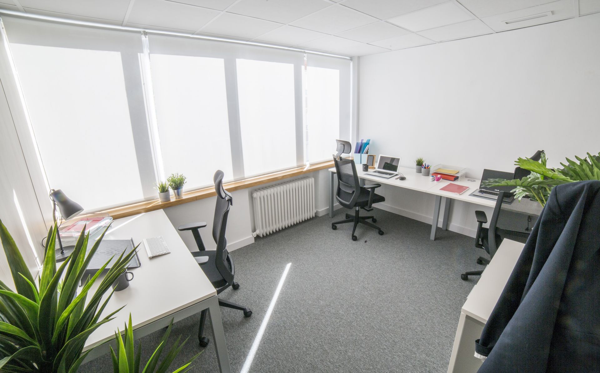 Located in one of the most exclusive neighborhoods in Madrid, our space is carefully designed to offer private offices and complete common areas