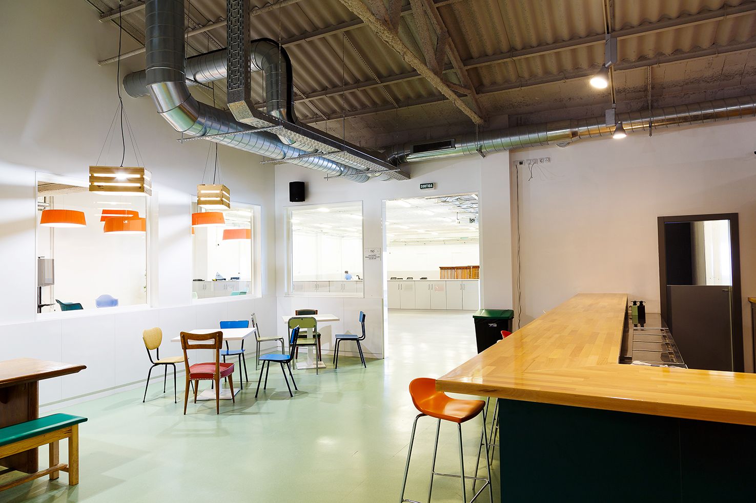 The CREC Sabadell is a coworking located in an industrial warehouse of over 1000m2 in Sabadell, completely renovated and converted into a spacious and bright work space.