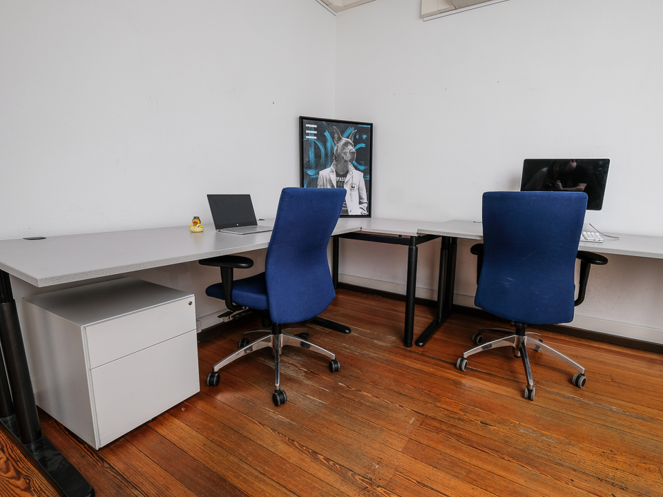 This semi open plan area is 300m2 and extends over three floors. It is completely furnished with a kitchen, conference room, an open area for informal meetings. It has all the necessary office equipment.