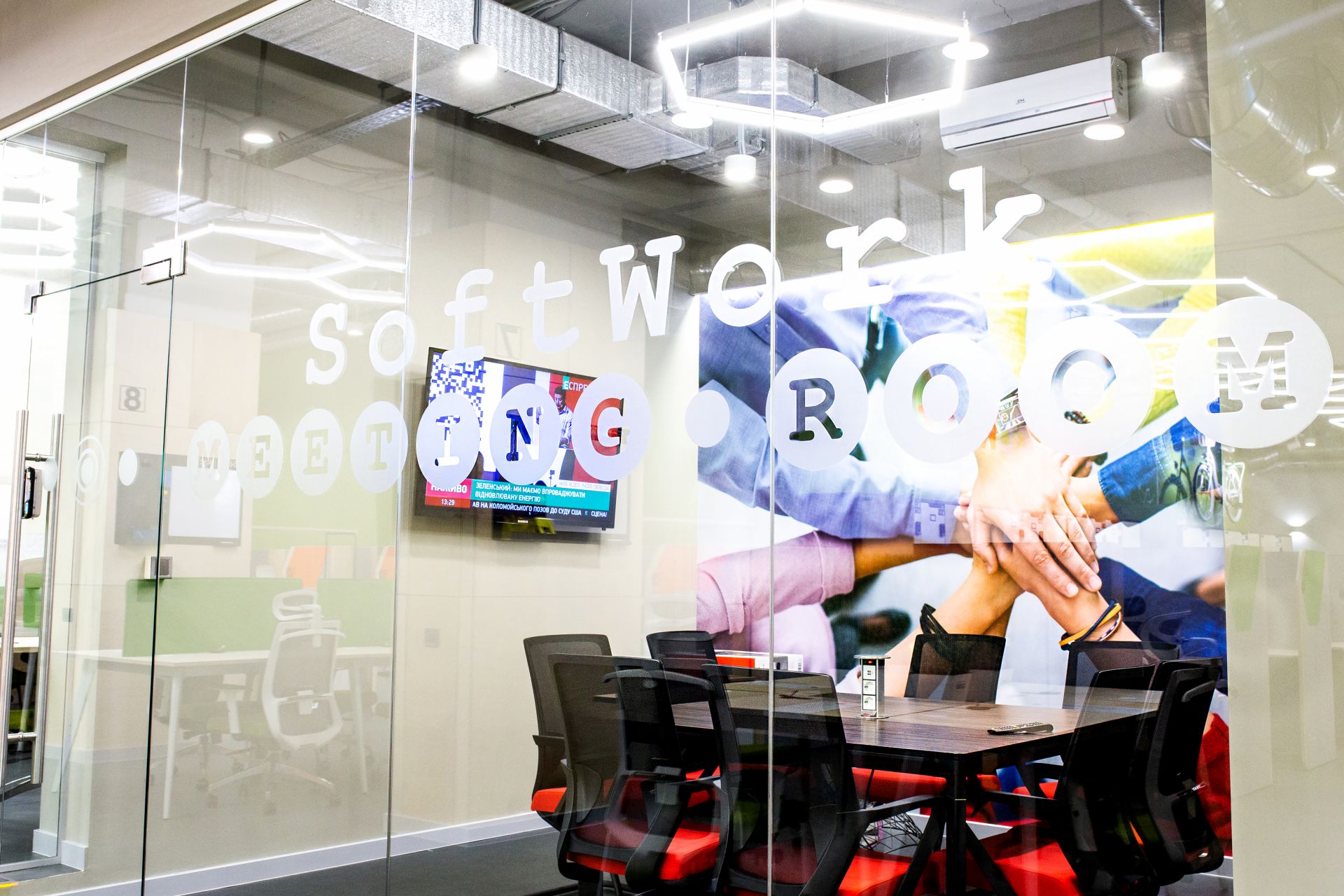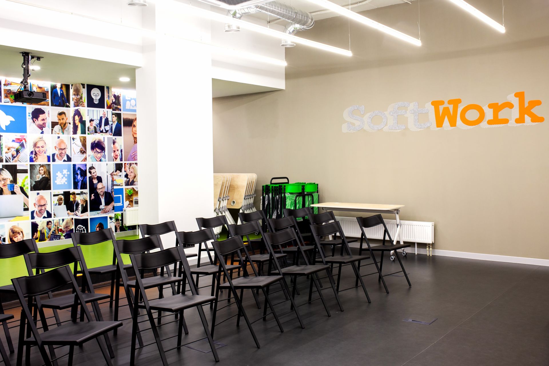 SoftWork is equipped with a modern, professional coffee machine, 57 boxes with electronic locks for storing documents and personal belongings, 5 - treadmills and two exercise bikes, to always have the opportunity to stretch their legs and keep themselves in good shape, as well as two meeting rooms, fully equipped with all necessary equipment.