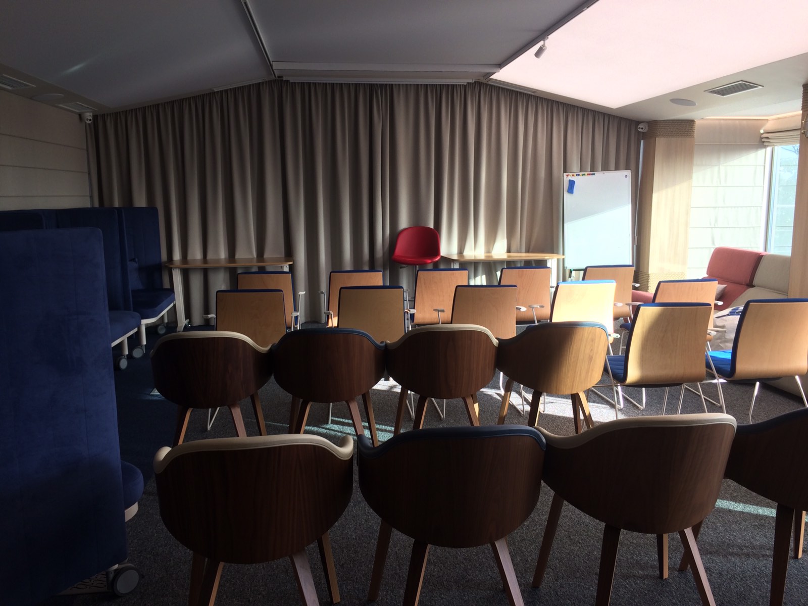 - projector, screen, microphones, video camera for online broadcasting and filming, multifunction devices, flipchart, whiteboard, USB and HDMI cables, chargers, office supplies.