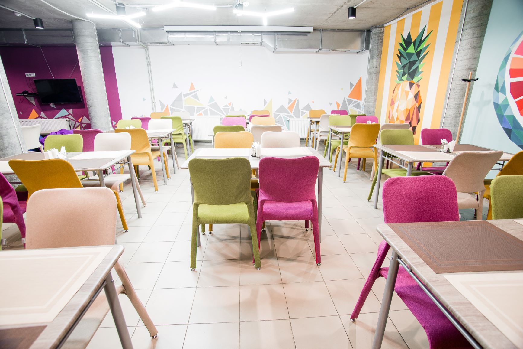 There are delicious breakfasts for you from 7:30 and it's lasting whole day, european and ukrainian dishes, a comfortable place to work, a seating area and an ideal location for your event.