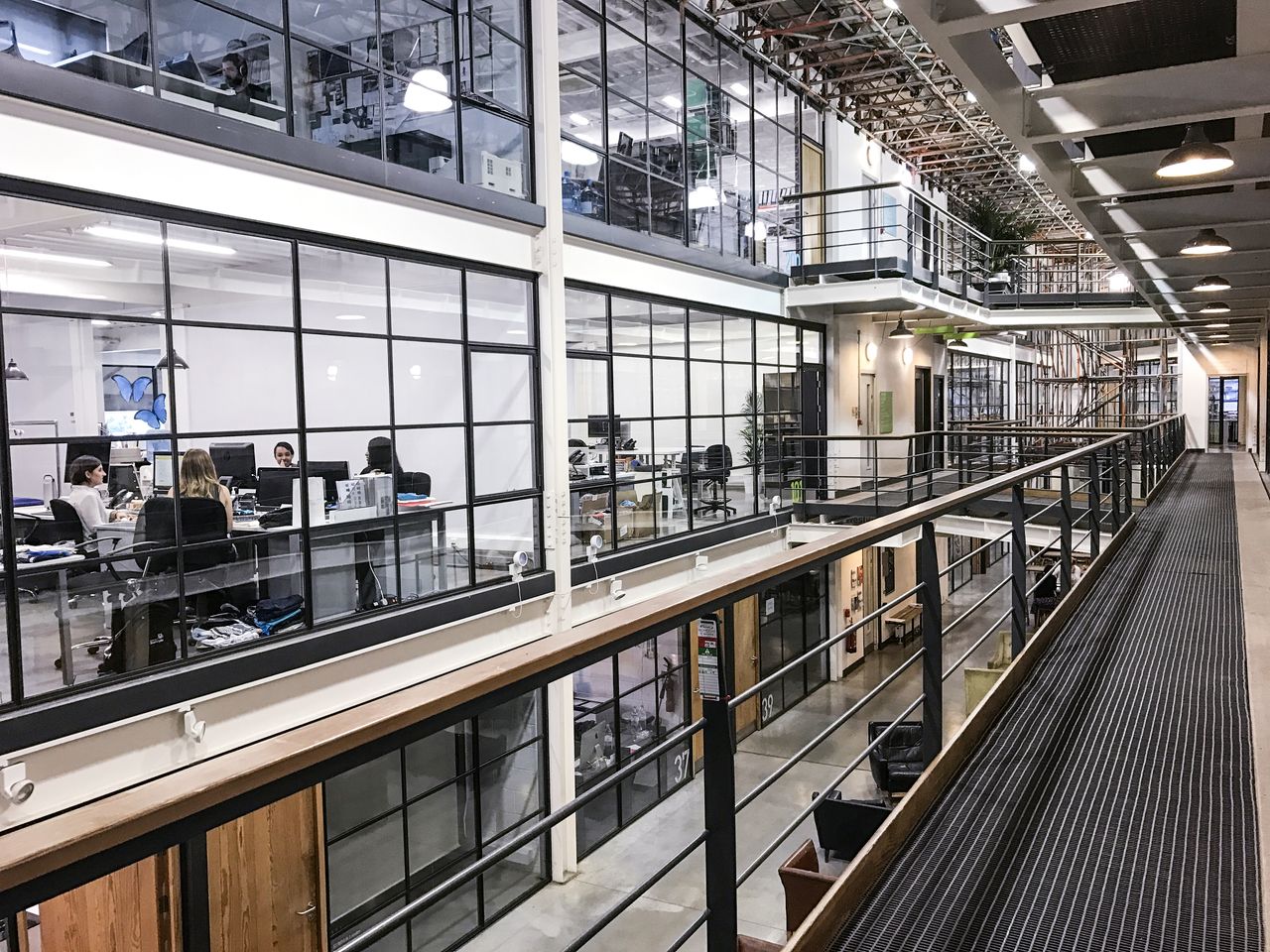 -The office is an open-plan, industrial chic studio