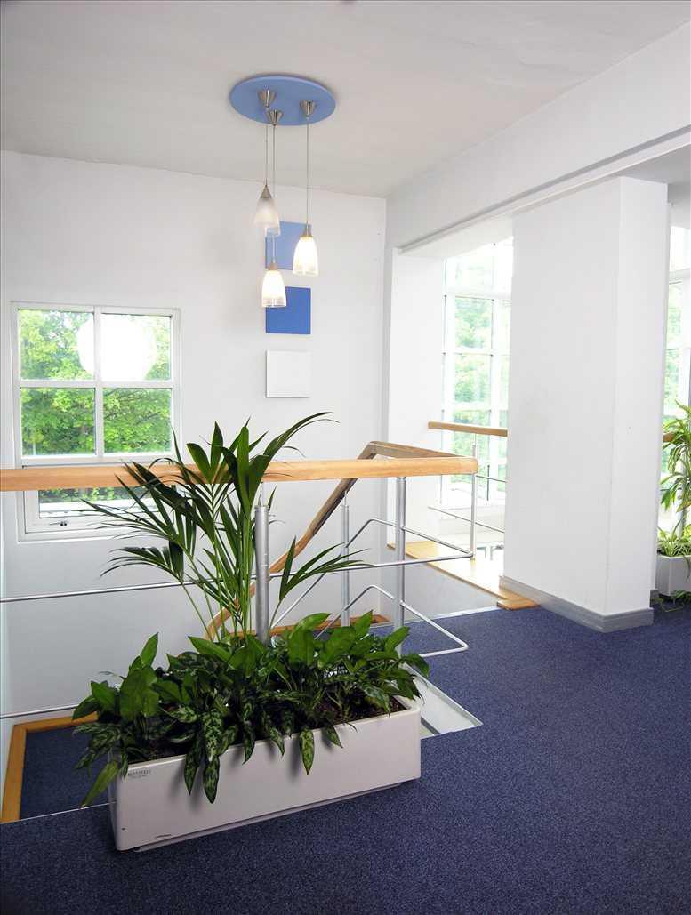 A modern building with various offices available for from three to 20 people. The offices are fully furnished in a neutral style, with corporate furniture and excellent technical facilities. Providing furnished or unfurnished office space, the space is suited to whatever business requirements you have. Should tenants be away from the area, they can work from other centres across the country. Administrative support is available, as well as reception services and telephone answering, parking spaces, IT support, meeting rooms and shower facilities, which are great for those cycling to the office.