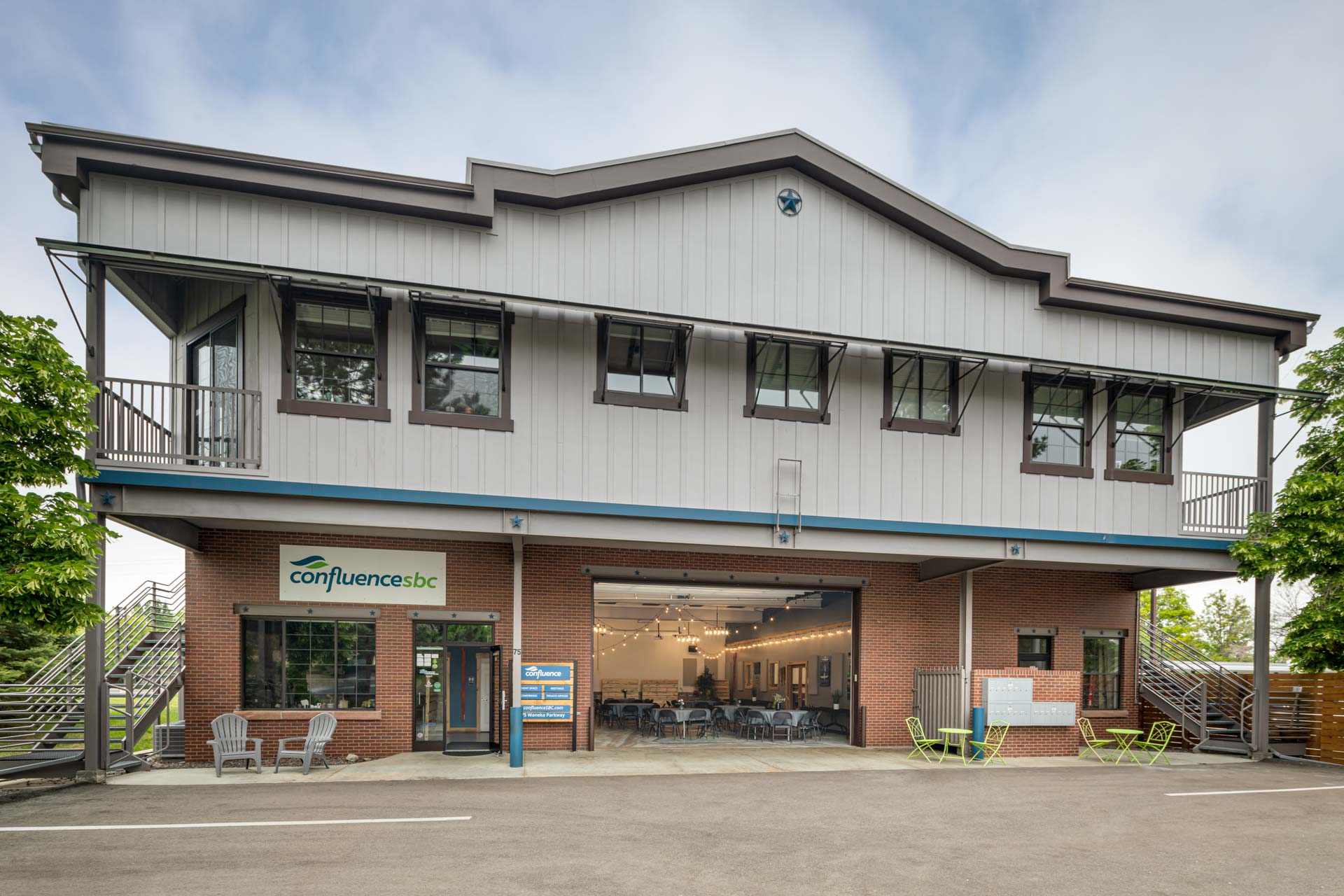 Confluence relocated to its current facility at 75 Waneka Parkway in 2018. The community features business owners, freelancers, and remote employees representing a range of professions. The space features nearly 8,000 square feet of private offices, open-plan workspace, meeting rooms, kitchen, lounge, and more.