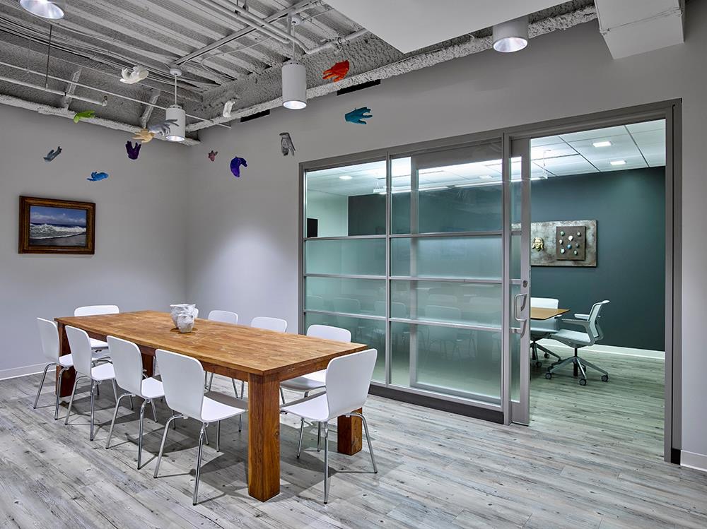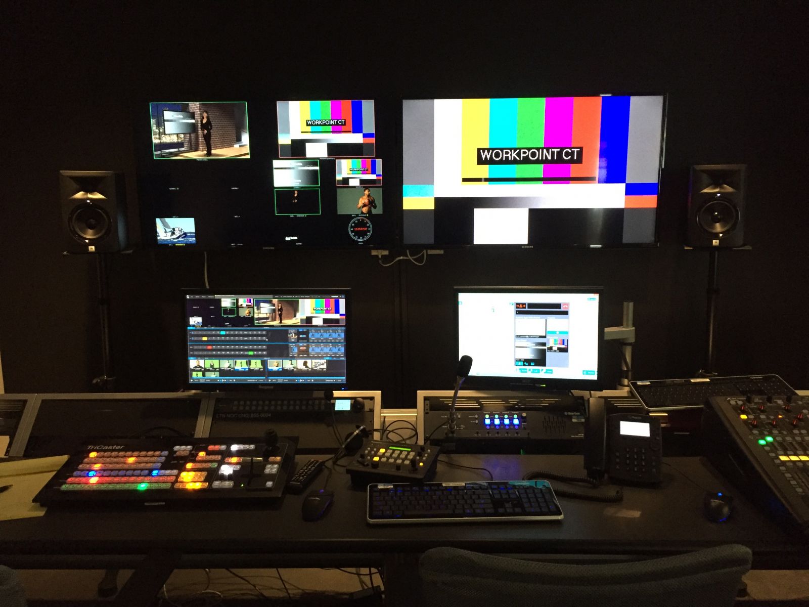 WORKPOINT also features a 1000sf TV/Media multi camera studio with green screen, lighting, audio and full control room with global connectivity for live streaming and broadcasting.