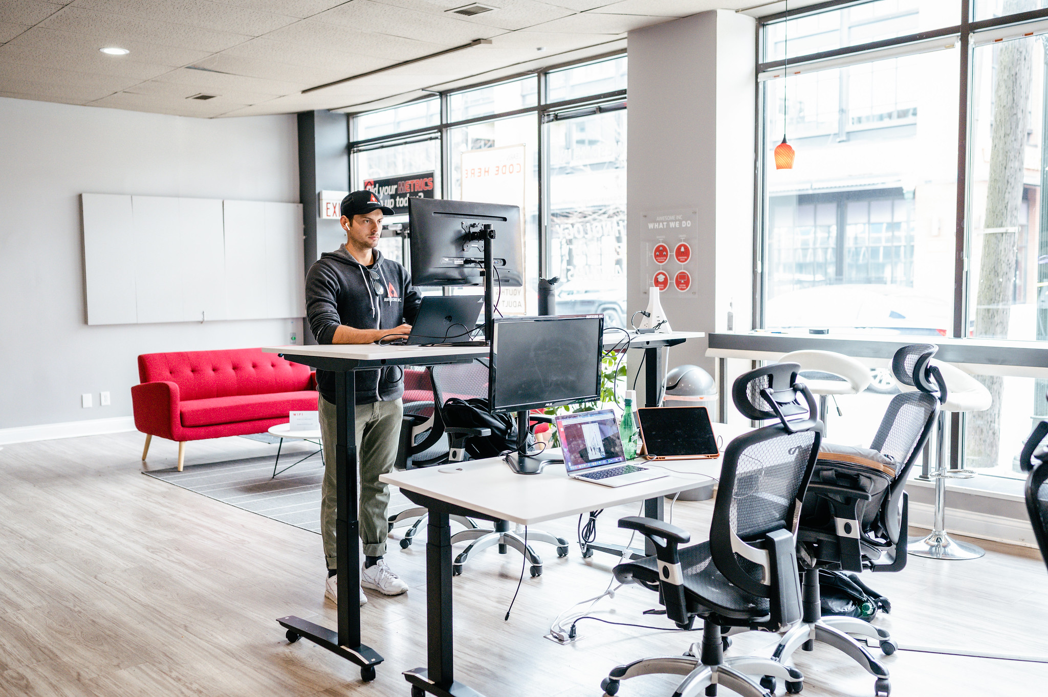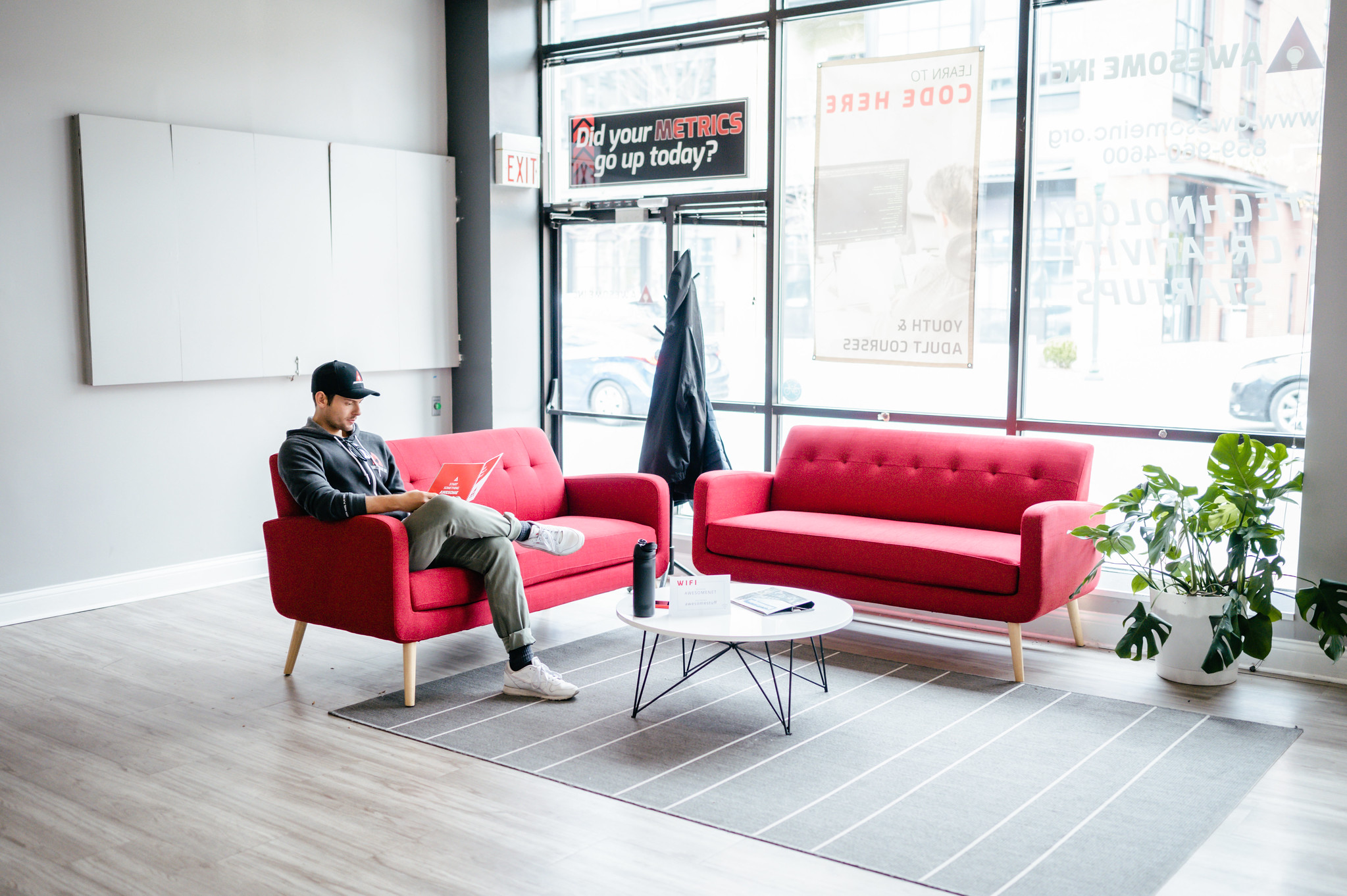 Whether you’re looking for a day pass, full time membership or even just conference room rental, Awesome Inc has got you covered. Members have full time 24/7 access to the workspace including amenities such as high-speed wifi, storage lockers, breakroom and kitchen access, office supplies and equipment as well as mentorship perks.