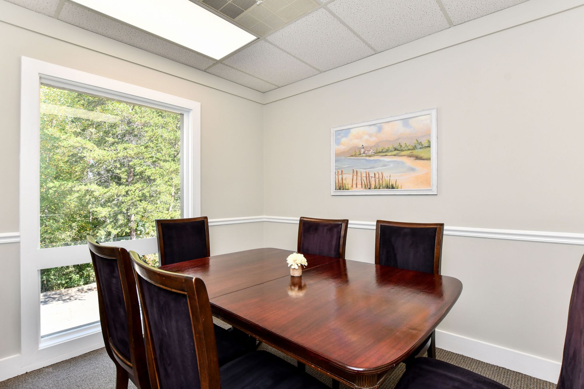 Bellamore is a comfortable, quiet atmosphere to get work done. There's plenty of free parking, handicap access, WiFi access, and a breakroom with a refrigerator and microwave. The Co-Sharing space has soft seating along with tables and chairs. There are 2 private phone rooms to take calls. When you are a member of the Co-Sharing space you also receive discounts on the meeting rooms and the day offices.