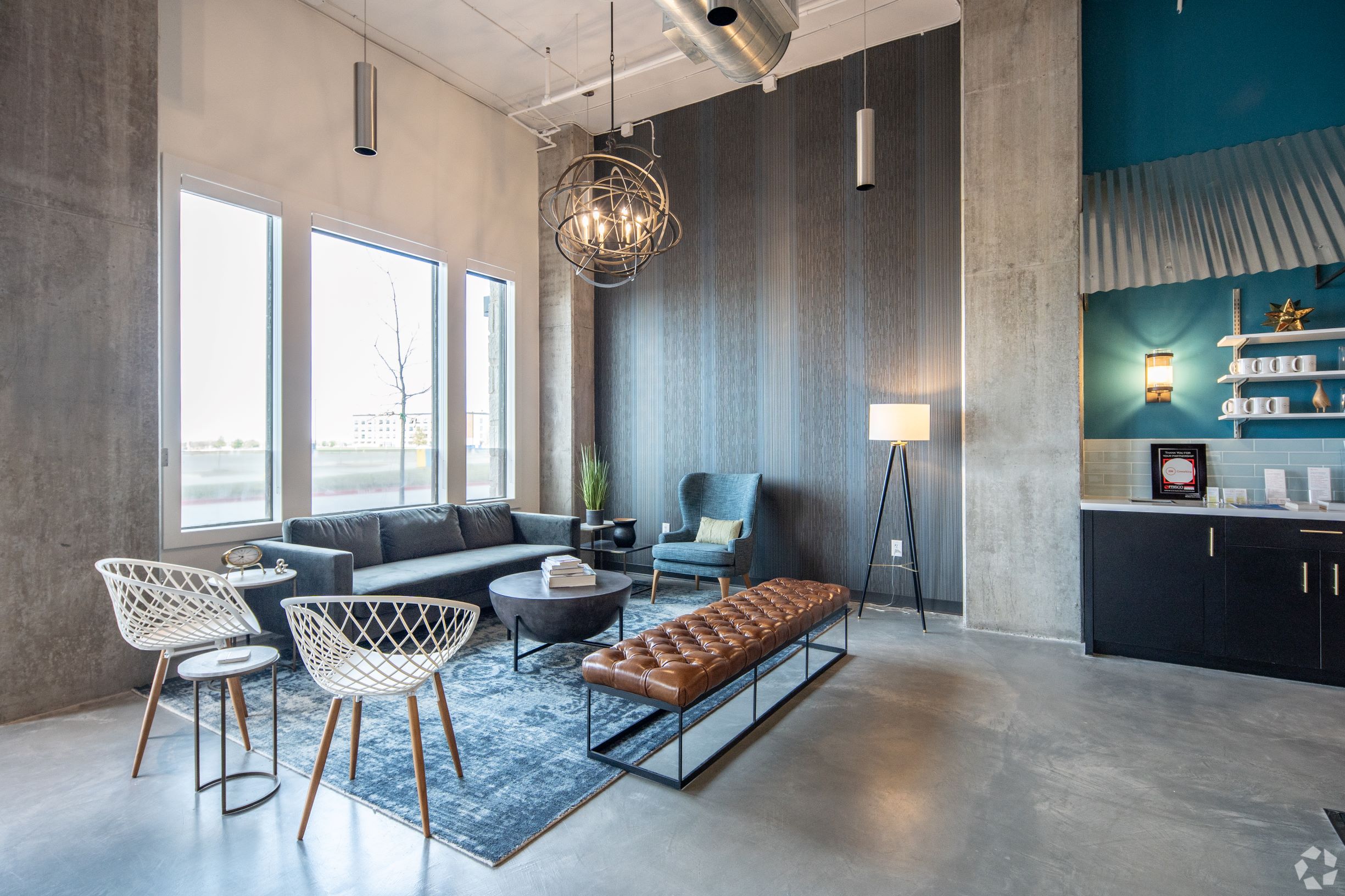 25N Frisco’s design reflects the vibrant, engaging neighborhood in which it’s located. A new way to live, work, and play in Frisco, TX, the 12,500 sq. ft. of private offices, dedicated desks, and flexible workspace is housed on the ground floor of Waterford Market Apartments, an apartment community near multiple community spaces, restaurants, retail amenities, and recreational facilities. This innovative mix of coworking and residential community offers benefits like shared amenities & event spaces, outdoor social pavilions, and an onsite HIIT-equipped fitness studio.